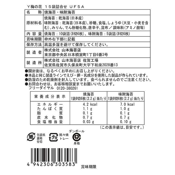 「梅の花」焼海苔 板のり5枚入