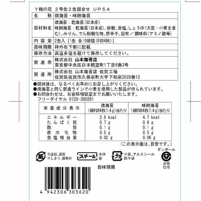 商品名の「梅の花」は、山本海苔店の創業の頃、江戸前のおいしい海苔は、梅の香ただよう寒中に採取されていたことに由来しています。