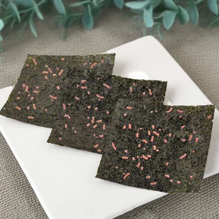 パリパリの海苔にザクザク食感のたこ焼き顆粒をまぶし、秘伝の味付けで仕上げました。