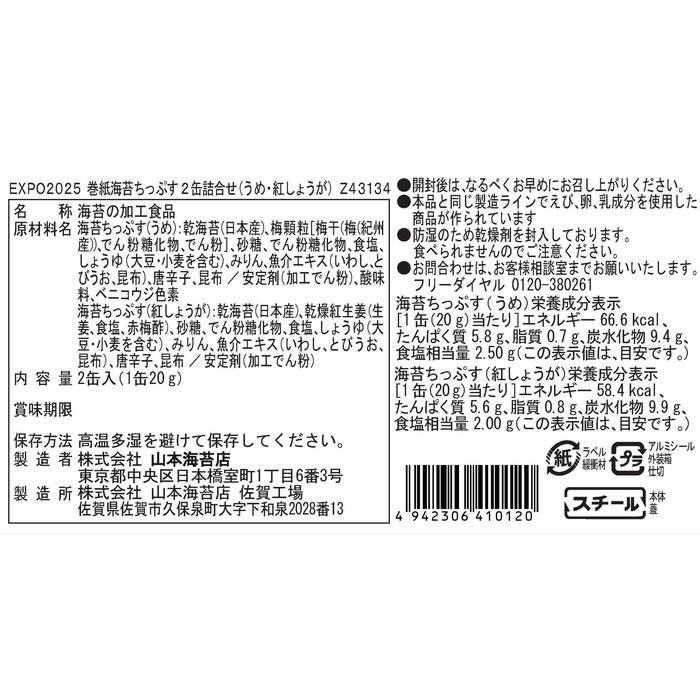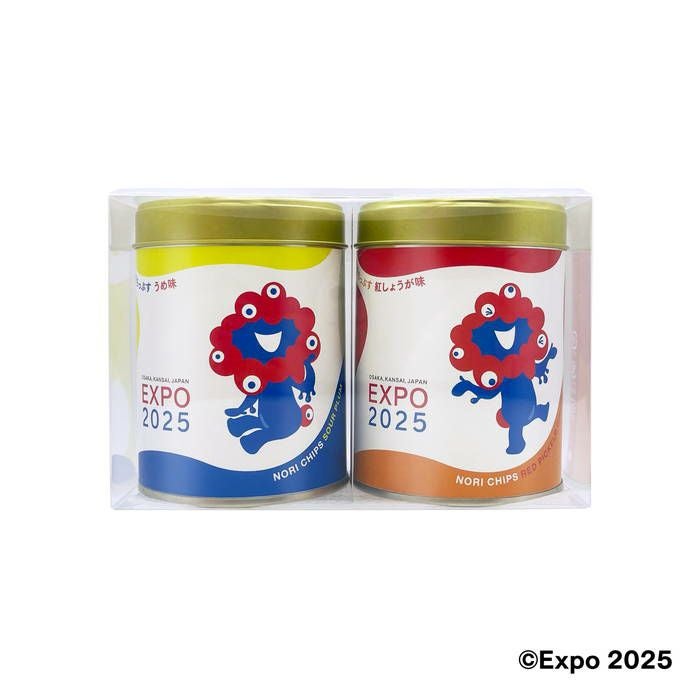 弊社人気商品の海苔ちっぷすを、EXPO2025(大阪・関西万博)公式キャラクターのミャクミャクがデザインされた巻紙缶でご用意します。