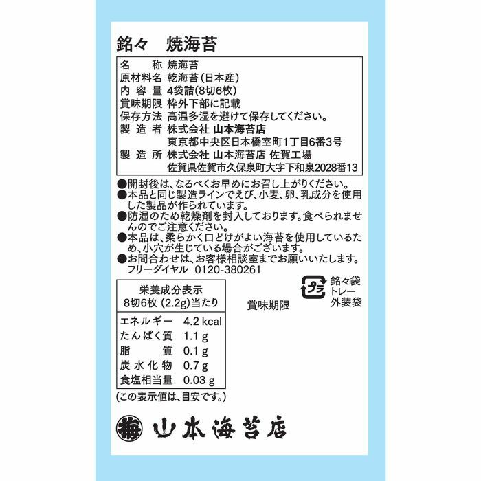 焼海苔 4袋詰(8切 6枚)