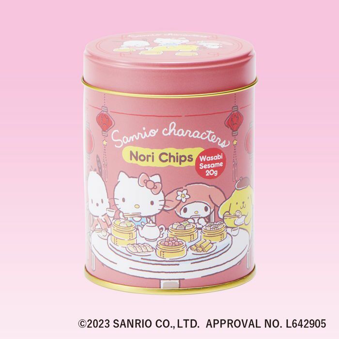人気ののりチップスシリーズからキティちゃんをはじめとしたサンリオキャラクター達の楽しく食事をするシーンがデザインされた可愛らしい缶でご用意いたします!