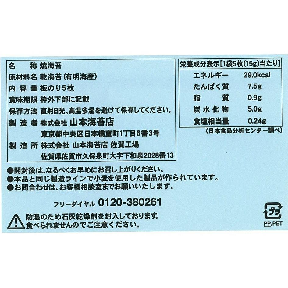 ※終売※山本謹製焼海苔 アルミパック入(板のり15枚)【未包装でのお届けになります】