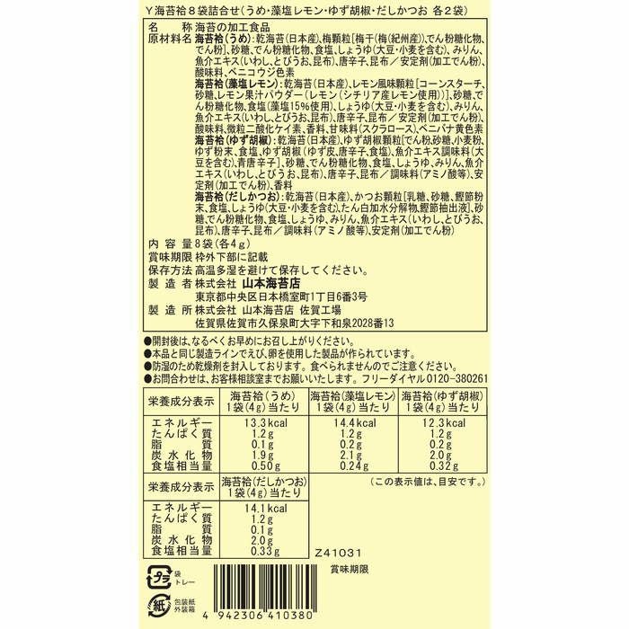 うめ・藻塩レモン・ゆず胡椒・だしかつお 各2袋詰(各4g)