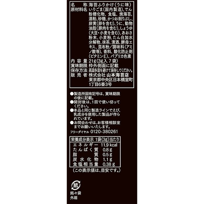風味豊かな良質な海苔と、濃厚で甘みのあるうに顆粒を使ったふりかけです。