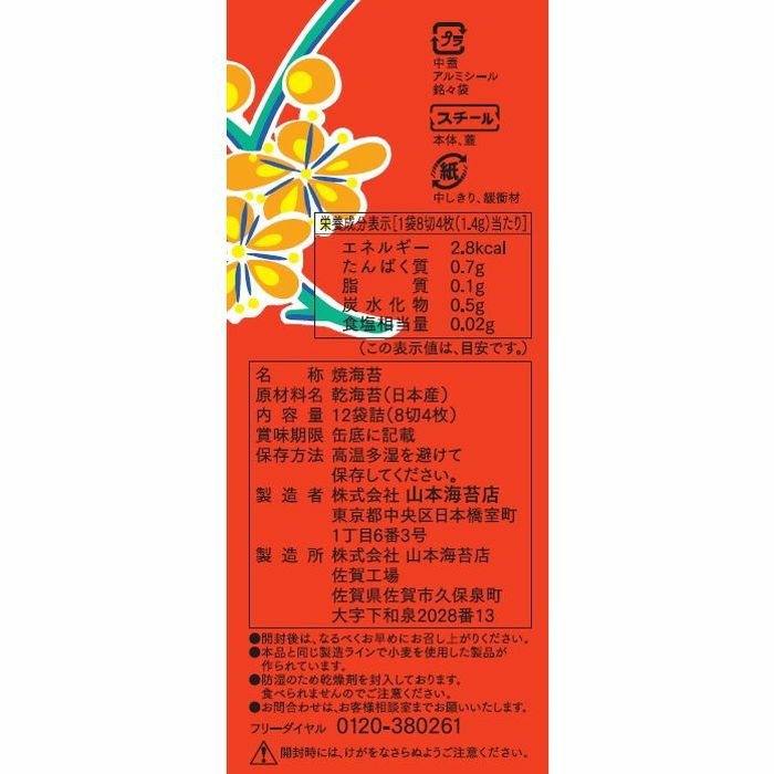 商品名の「梅の花」は、山本海苔店の創業の頃、江戸前のおいしい海苔は、梅の香ただよう寒中に採取されていたことに由来しています。