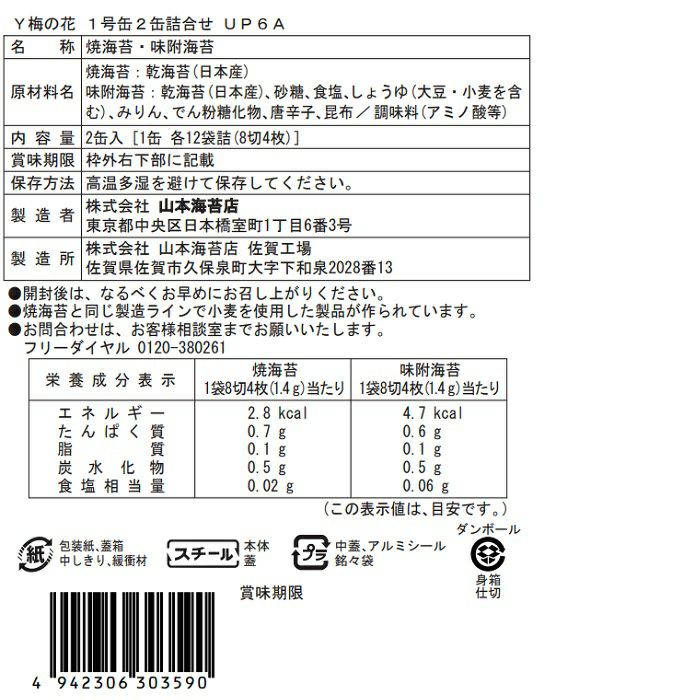 いつもは、百貨店で購入させていただいておりましたが、ケガのため、今回はオンラインで。定番の梅の花をお世話になった人に贈りました。大変喜んでもらえました。オンラインも便利でいいですね!山本海苔様は、本当に美味しいので、贈り物にも、家族で食べるのにも大変ありがたいです。また利用します。